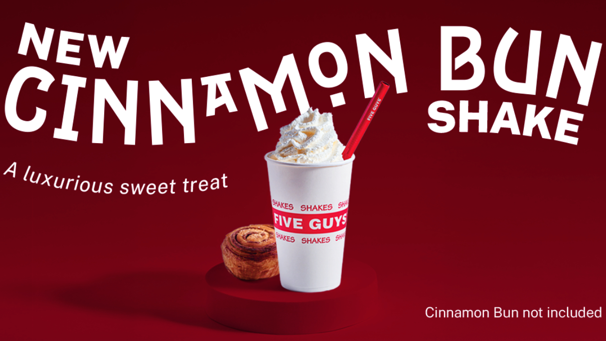 Ever wished you could bottle the bliss of a freshly baked cinnamon bun? Five Guys have done just that. Introducing Five Guys new limited-edition Cinnamon Bun Shake – luxuriously sweet, perfectly spiced, and made for autumn indulgence.